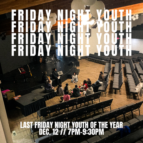 This is the last Friday Night Youth of the year! See you all for a time of games, worship, and the word this Friday from 7PM-9:30PM.